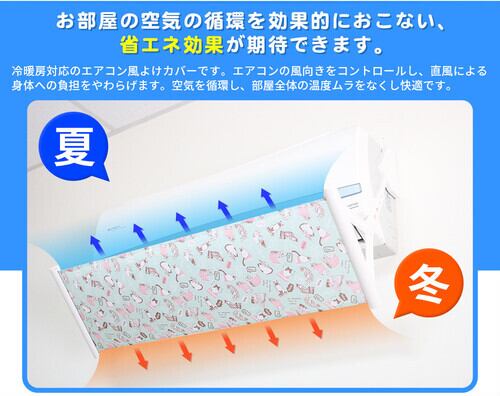 ●冷暖房対応のエアコン風よけカバーです。空気を循環し、部屋全体の温度ムラを なくし快適です。