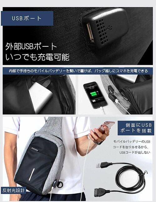 ニューヨーク風 USB充電ポートショルダーバッグ