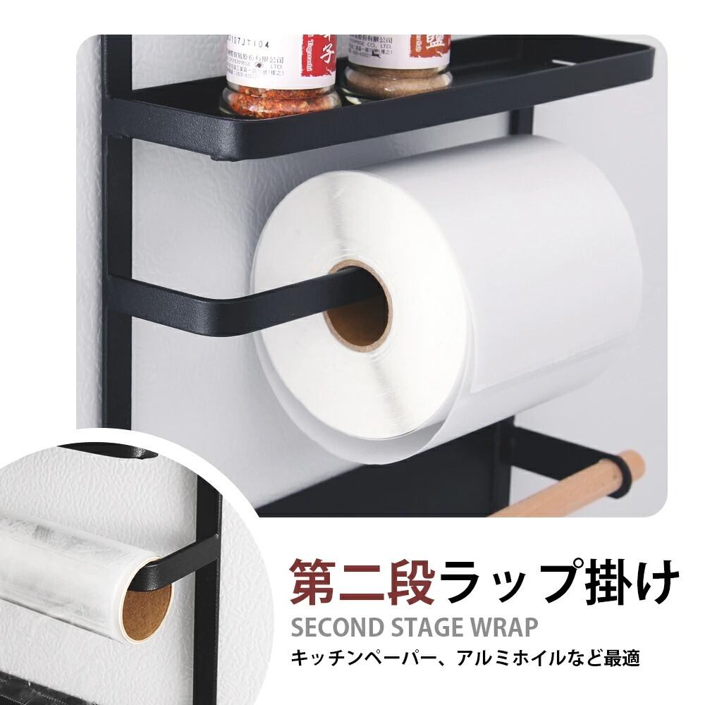 【送料無料】冷蔵庫横 マグネット サイドラック キッチン 収納 ホルダー ラップホルダー 小物入れ 簡単設置 収納 おしゃれ 白 黒(ホワイト/ブラック)