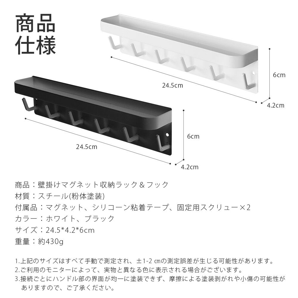 【送料無料】壁掛けマグネット 収納ラック&フック小物入れ インテリア 設置簡単 壁面を傷つけにくい(ホワイト)【JP210-01】