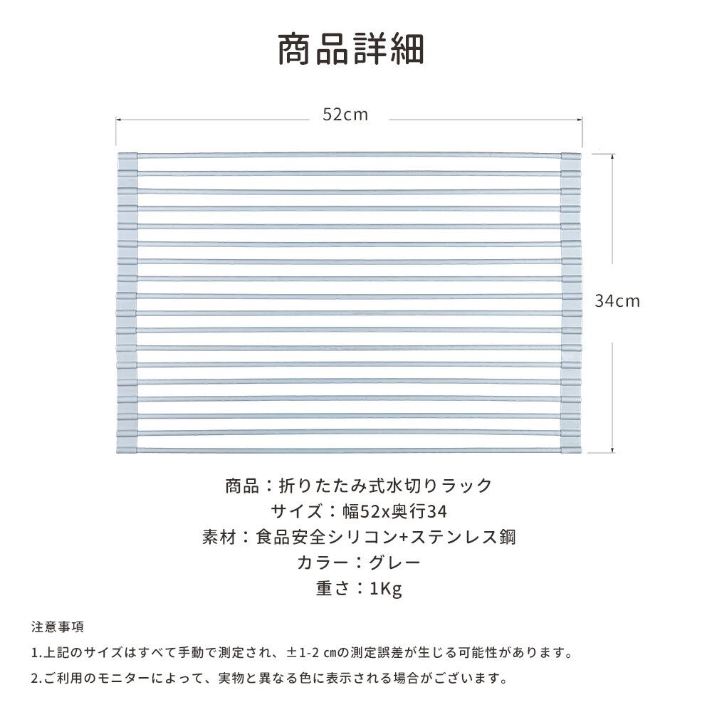 【送料無料】折り畳み水切りラック 大きいサイズ 52cm x 34cm 折りたたみ 水切りかご 抗菌 水切り 錆びない304ステンレス+全シリコン 丸めて 18本 食器乾燥 皿置き場 巻き収納 台所 キッチン【JP131-01】